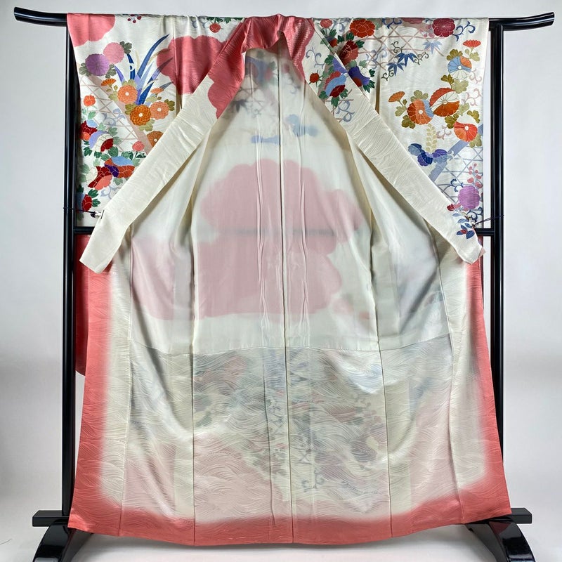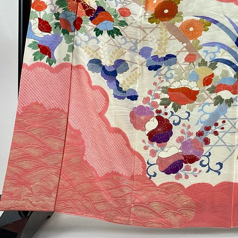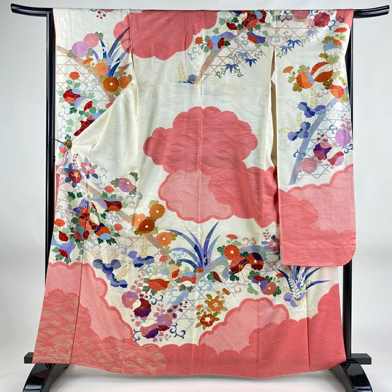 【振袖】 白系 クリーム 秀品 B 約160cm~約169cm 裄丈66cm M 袖丈91cm以上 7990-9980 二万以下