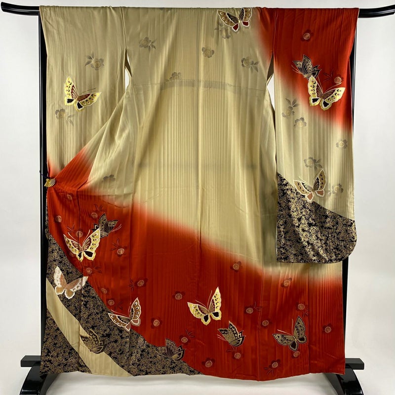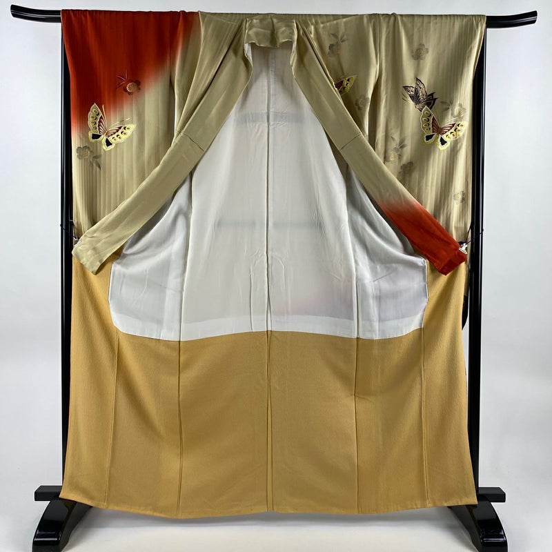 【振袖】 白系 ベージュ 秀品 B 約160cm~約169cm 裄丈66cm M 袖丈91cm以上 7990-9980 二万以下