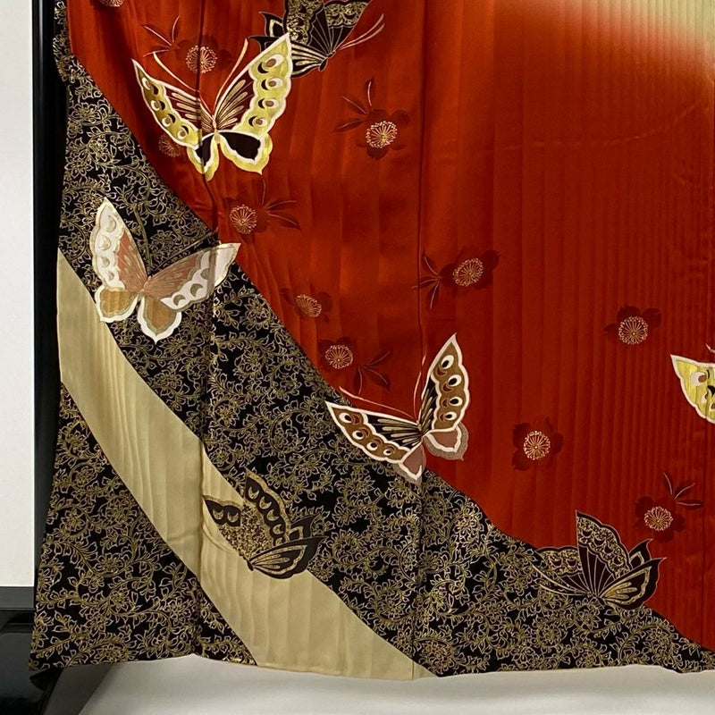 【着物ランク】秀品 【素材】正絹 【身丈】約163.5cm 【裄丈】約66.5cm 【袖丈】約107.5cm 【袖幅】約35cm 【前幅】約23.5cm 【後幅】約30cm 【サイズ】M 【着物仕立て】袷 【着用時期】10~5月 【状態ランク】ランクB 【着物着用シーン】成人式、謝恩会