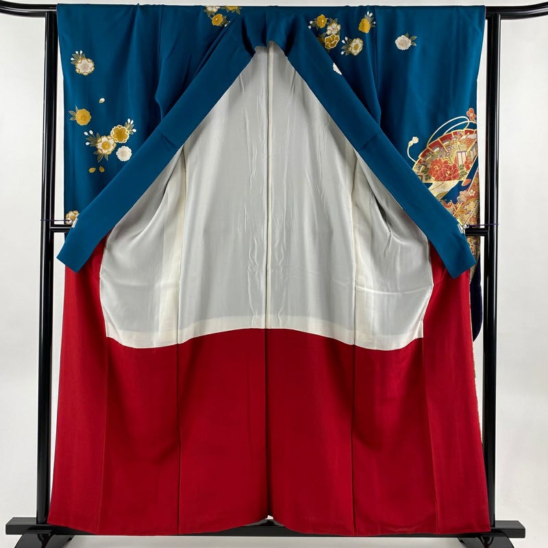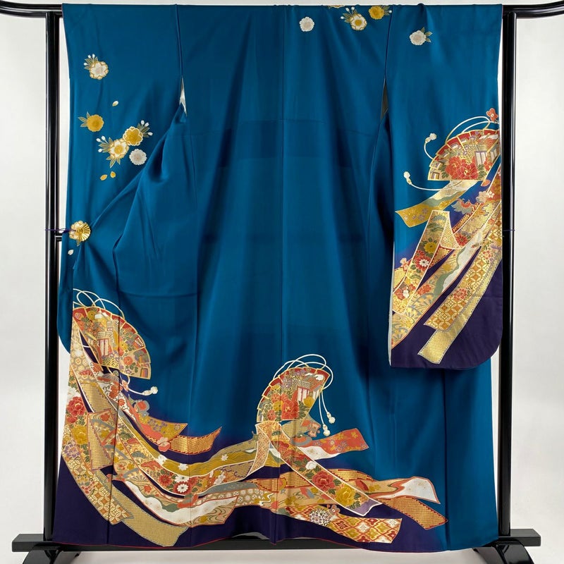 【振袖】 青系 青緑 秀品 C 約150cm~約159cm 裄丈63cm-64cm M 袖丈91cm以上 7990-9980 二万以下