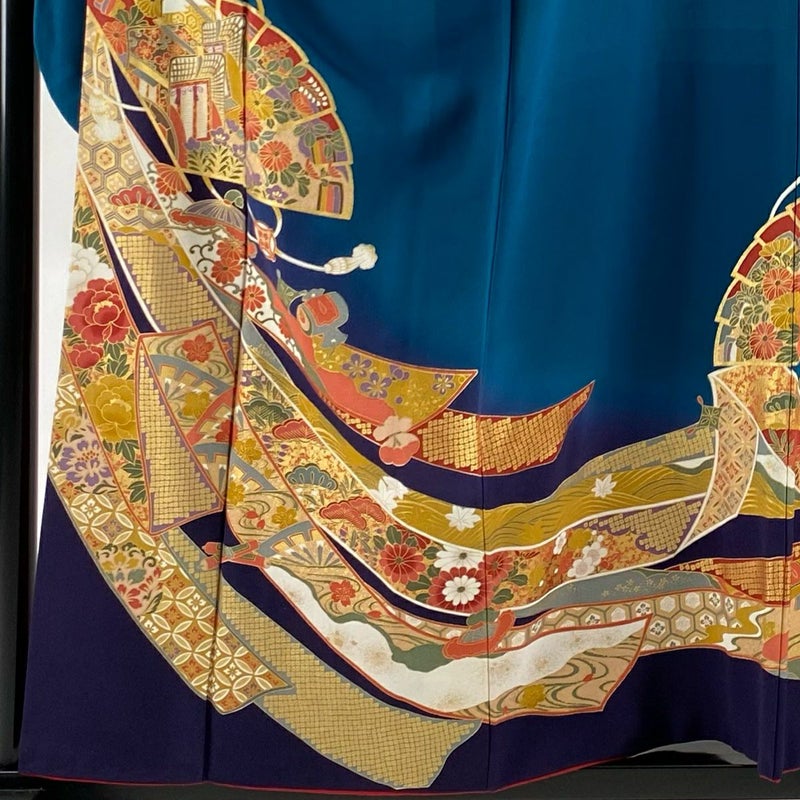 【着物ランク】秀品 【素材】正絹 【身丈】約159cm 【裄丈】約64.5cm 【袖丈】約104.5cm 【袖幅】約33.5cm 【前幅】約24cm 【後幅】約30.5cm 【サイズ】M 【着物仕立て】袷 【着用時期】10~5月 【状態ランク】ランクC 【着物着用シーン】成人式、謝恩会