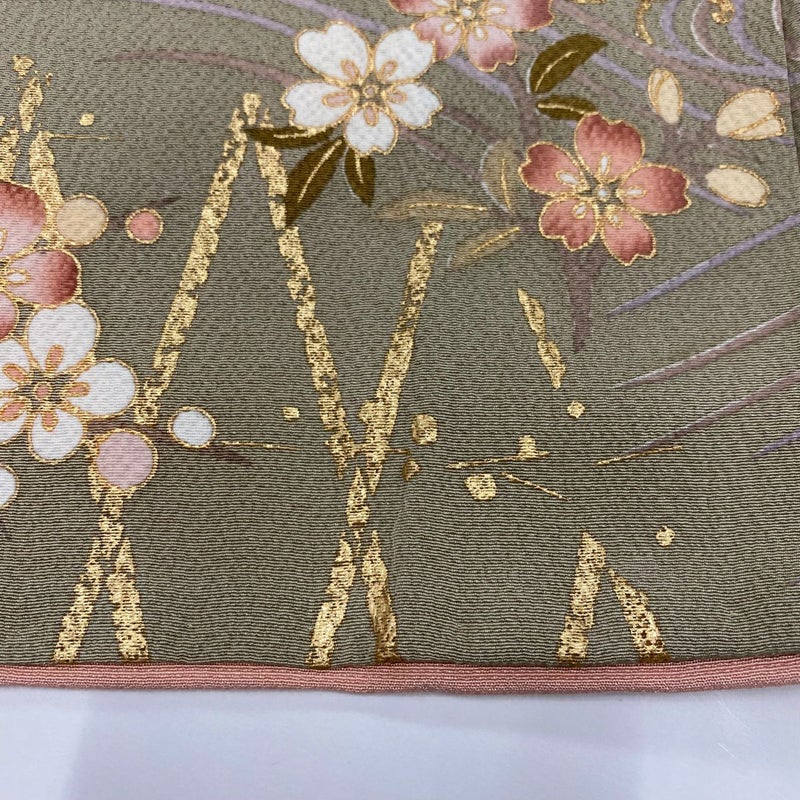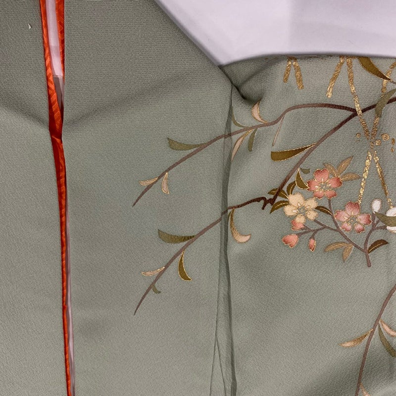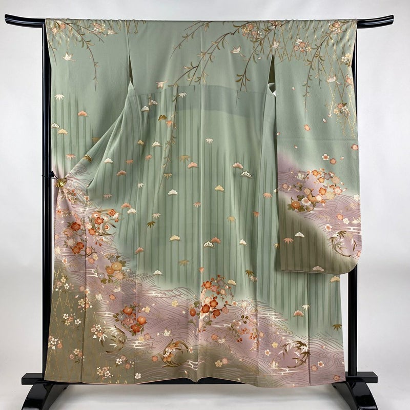 【振袖】 灰色系 灰緑 秀品 B 約160cm~約169cm 裄丈66cm M 袖丈91cm以上 7990-9980 二万以下