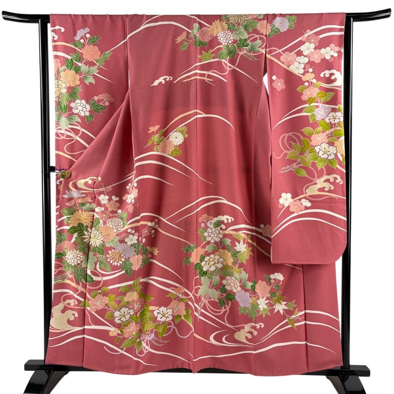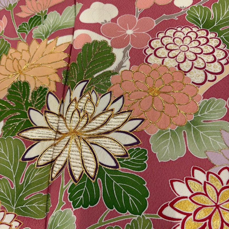 【着物ランク】逸品 【素材】正絹 【身丈】約158cm 【裄丈】約64.5cm 【袖丈】約109.5cm 【袖幅】約32.5cm 【前幅】約24.5cm 【後幅】約30.5cm 【サイズ】M 【着物仕立て】袷 【着用時期】10~5月 【状態ランク】ランクB 【着物着用シーン】成人式、謝恩会