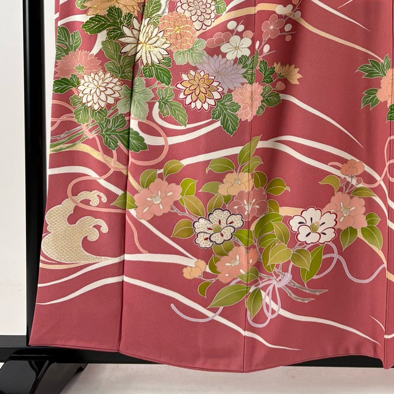 【振袖】 赤系 ピンク 逸品 B 約150cm~約159cm 裄丈63cm-64cm (M)size 袖丈91cm以上 30000- 五万以上