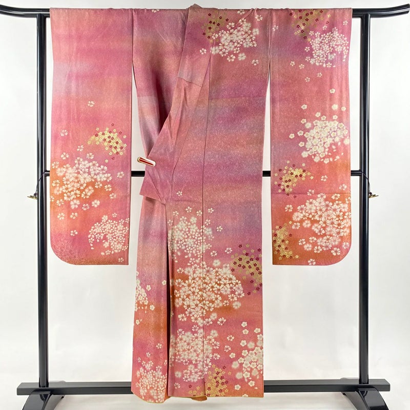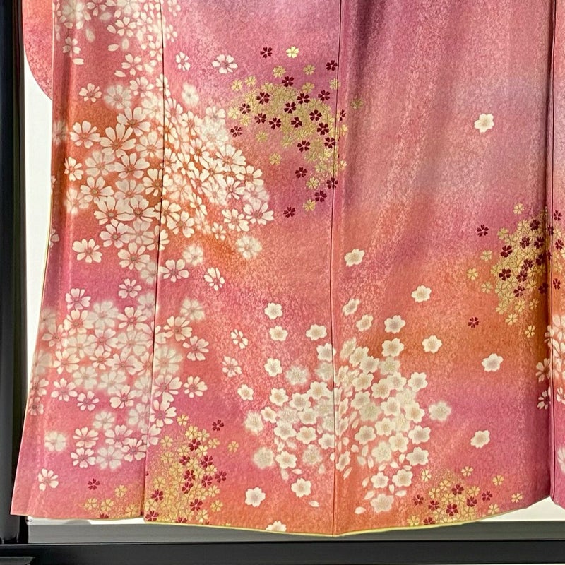 【振袖】 赤系 ピンク 逸品 A 約150cm~約159cm 裄丈63cm-64cm (S)size 袖丈91cm以上 30000- 美品 五万以下
