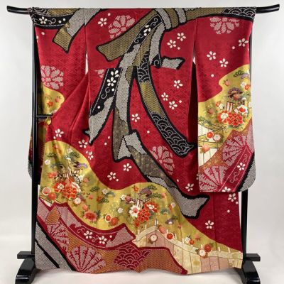 未婚女性の第一礼装としてお使いいただける振袖でございます。 お好みの帯や小物と合わせて晴れの日に相応しい華やかな装いにいかがでしょうか。 身丈はこれ以上伸ばすことができません。 裄丈を+2.0cm程、現在の長さから伸ばせます。 表地所々にヤケ、衿周りや両袖口中に汚れ、表地所々にシワがございます。 リユース品としては良い状態で、まだまだご活用頂けると思われます。 沢山の商品の中からご覧いただき誠にありがとうございます。