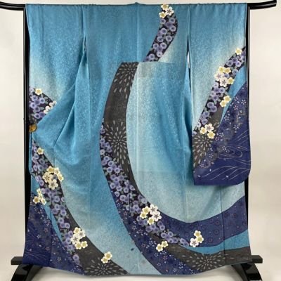 【振袖】 青系 青 逸品 B 約160cm~約169cm 裄丈67cm-68cm (L)size 袖丈91cm以上 30000- 五万以下