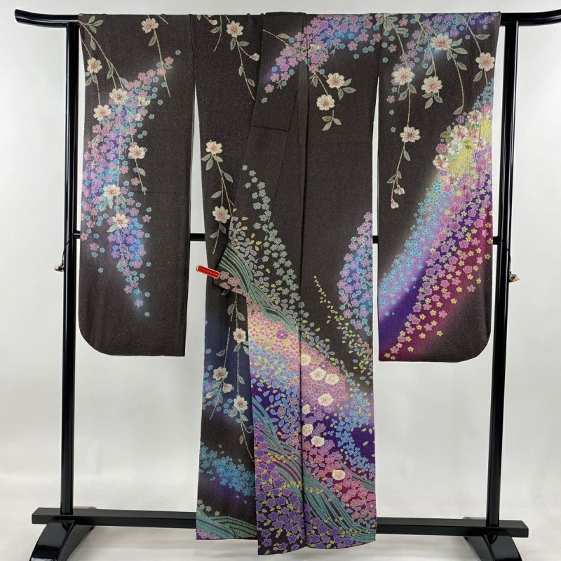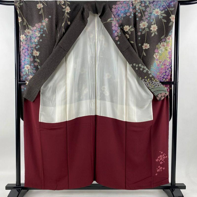 【振袖】 灰色系 灰茶 逸品 A 約150cm~約159cm 裄丈63cm-64cm (M)size 袖丈91cm以上 4000-7980 美品 二万以下