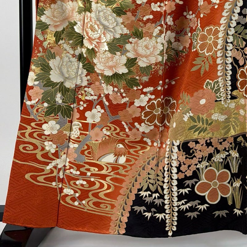【振袖】 赤系 オレンジ 名品 B 約160cm~約169cm 裄丈67cm-68cm (M)size 袖丈91cm以上 9990-29990 二万以下