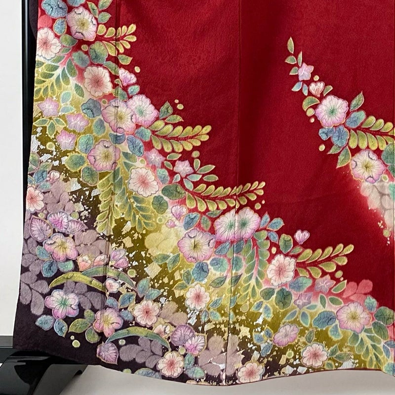 【振袖】 赤系 赤 名品 A 約160cm~約169cm 裄丈67cm-68cm (L)size 袖丈91cm以上 9990-29990 美品 二万以下