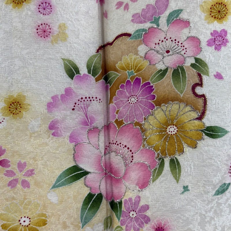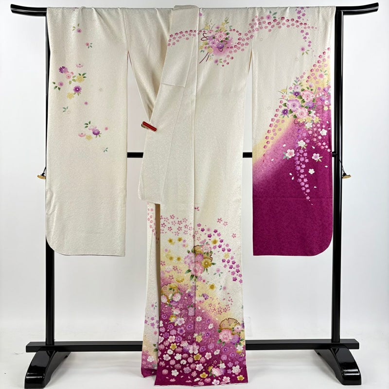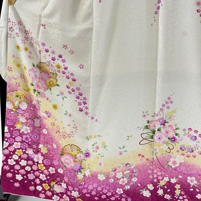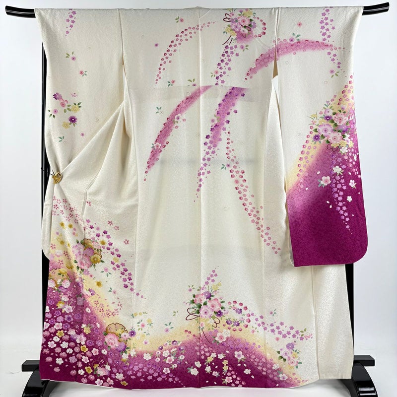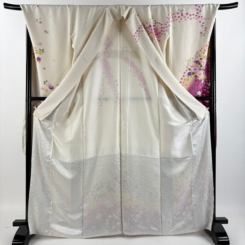 【振袖】 白系 クリーム 逸品 B 約160cm~約169cm 裄丈69cm以上 (L)size 袖丈91cm以上 9990-29990 二万以下