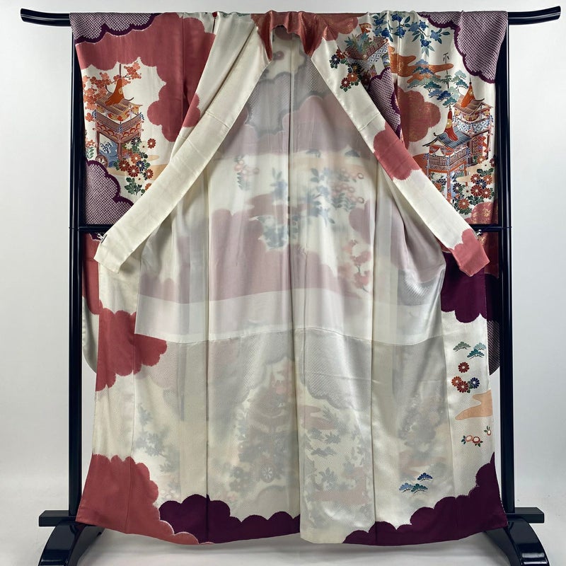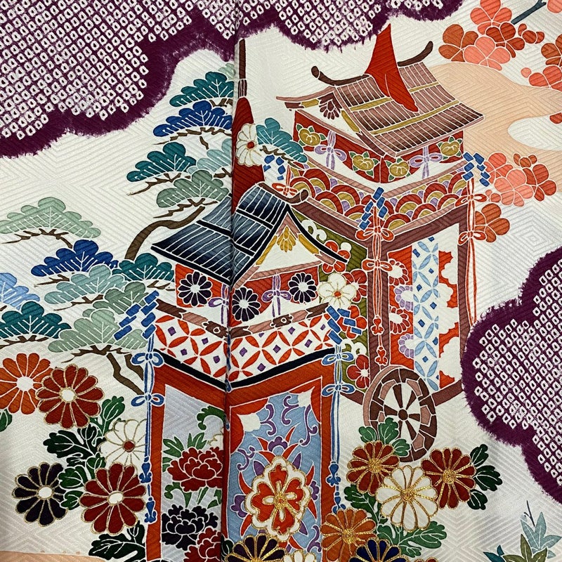 【着物ランク】秀品 【素材】正絹 【身丈】約164cm 【裄丈】約68cm 【袖丈】約115cm 【袖幅】約35cm 【前幅】約23cm 【後幅】約29cm 【サイズ】L 【着物仕立て】袷 【着用時期】10~5月 【状態ランク】ランクB 【着物着用シーン】成人式、謝恩会