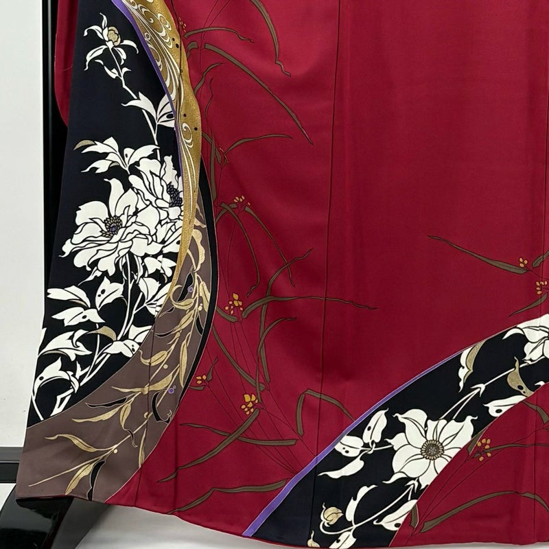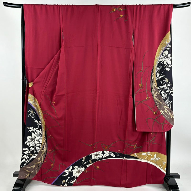 【振袖】 赤系 えんじ色 秀品 B 約160cm~約169cm 裄丈69cm以上 (L)size 袖丈91cm以上 4000-7980 二万以下