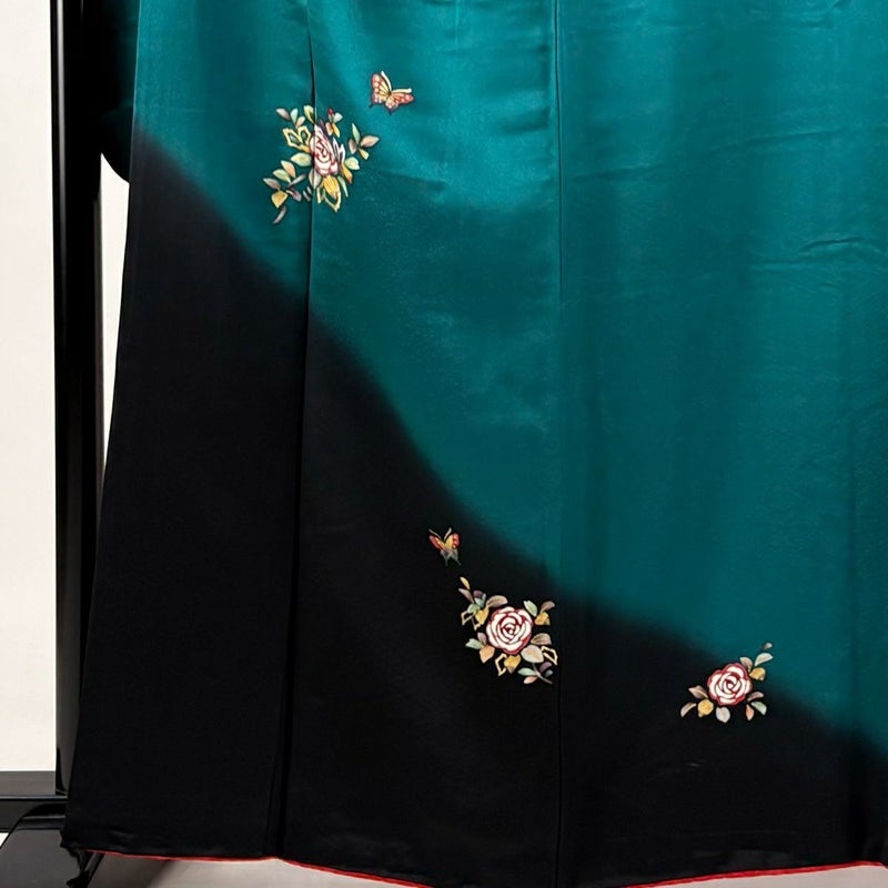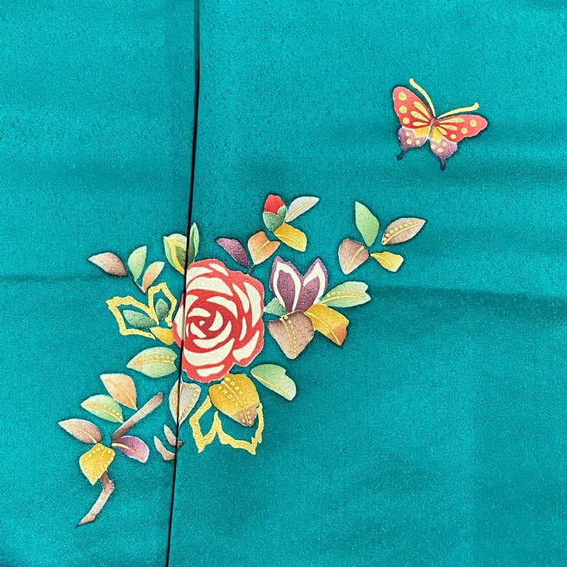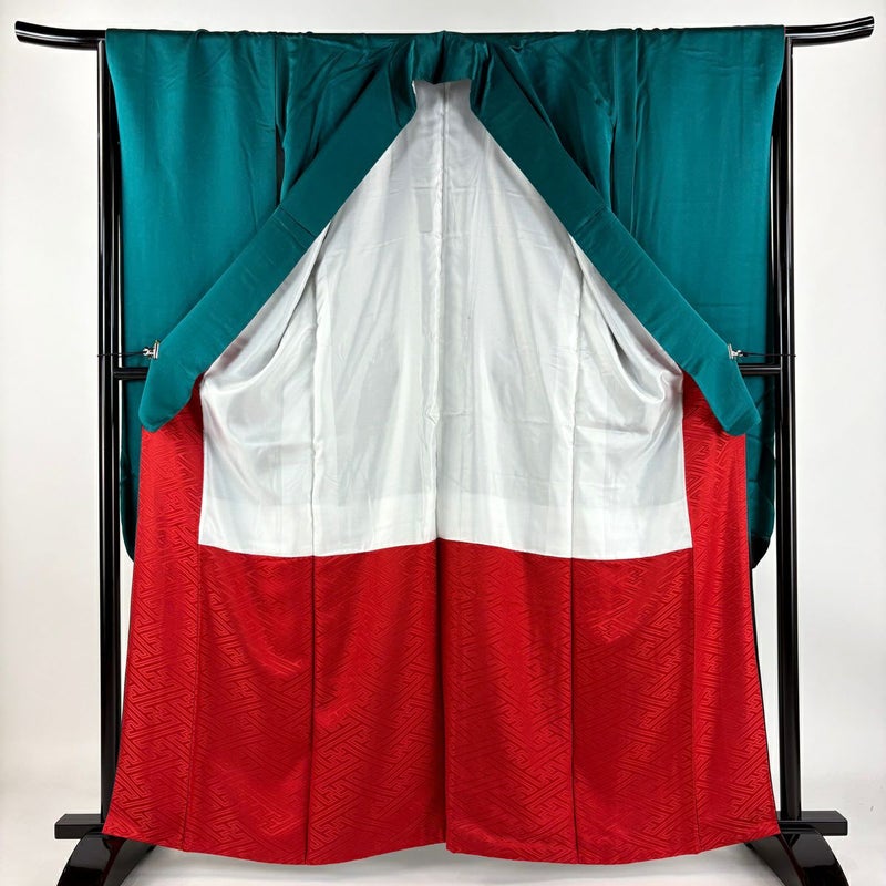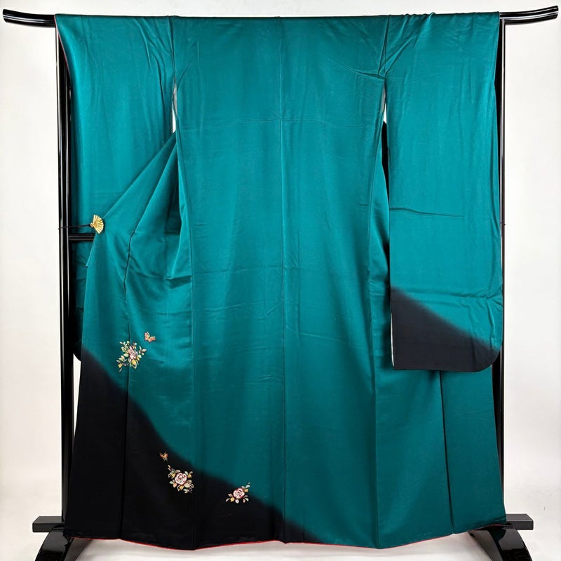 【振袖】 青系 青緑 秀品 B 約160cm~約169cm 裄丈66cm (M)size 袖丈91cm以上 4000-7980 二万以下