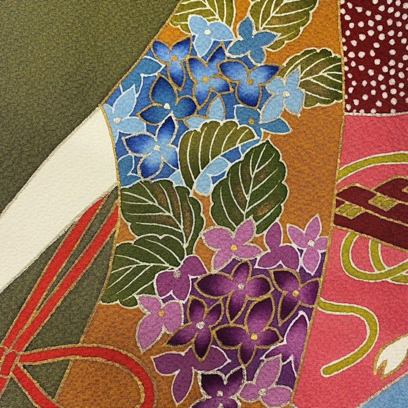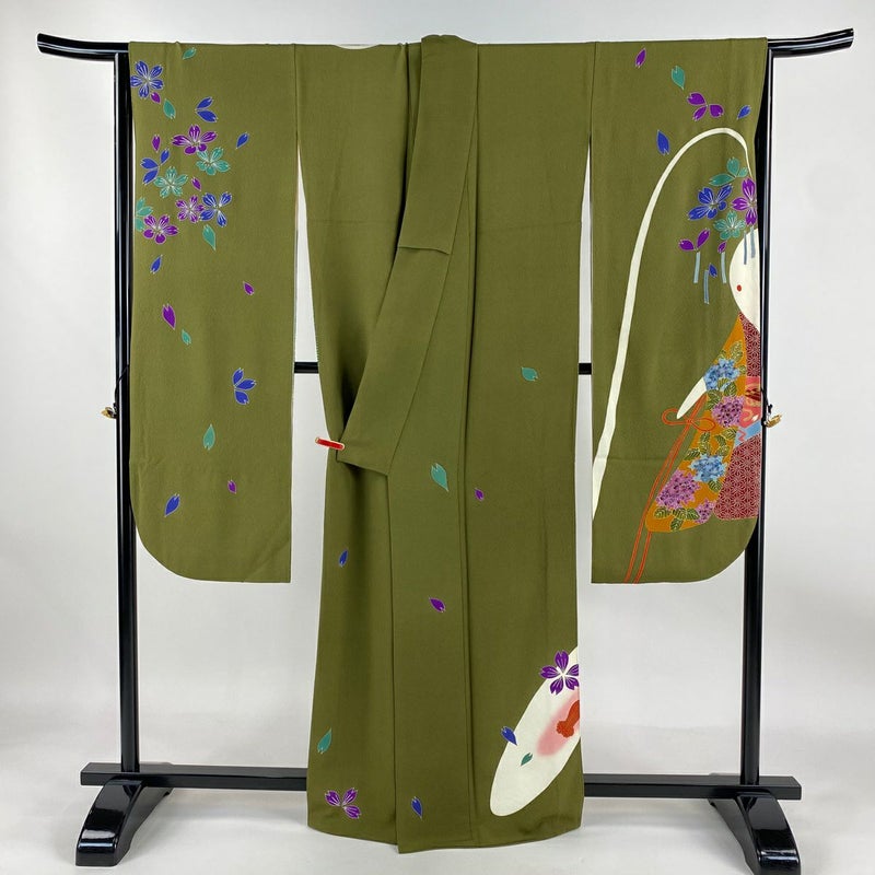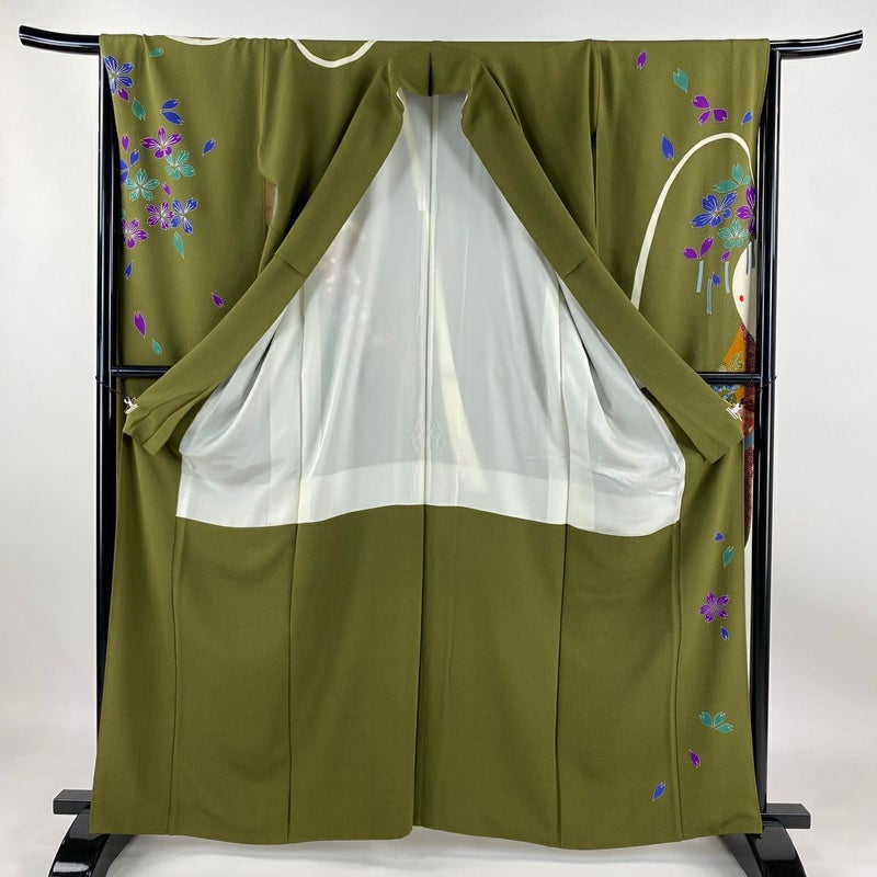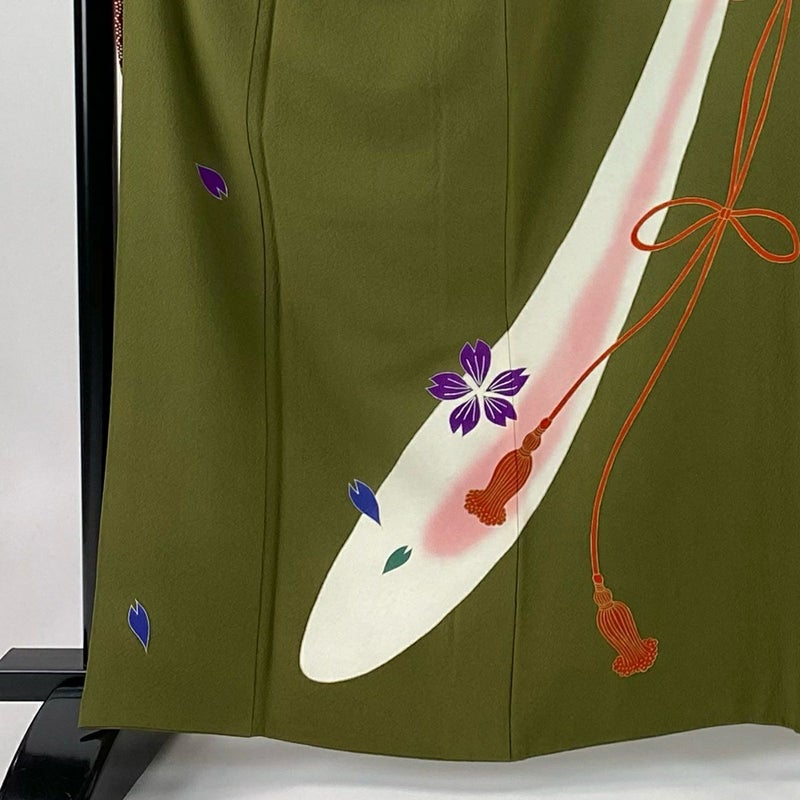 【振袖】 緑系 鶯色 逸品 B 約160cm~約169cm 裄丈67cm-68cm (L)size 袖丈91cm以上 30000- 五万以上