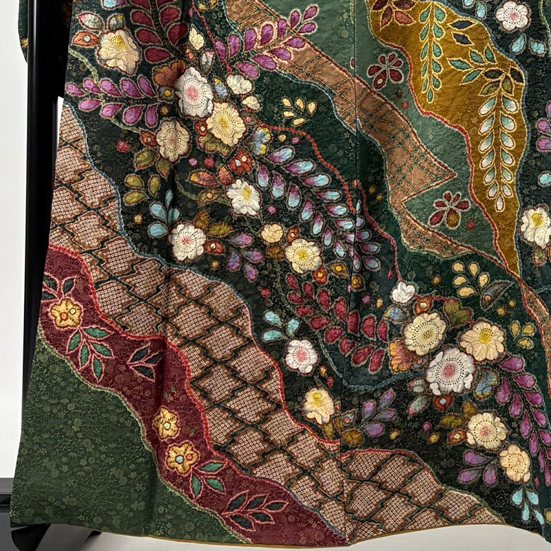 【振袖】 緑系 緑 逸品 A 約160cm~約169cm 裄丈69cm以上 (L)size 袖丈91cm以上 30000- 美品 五万以下