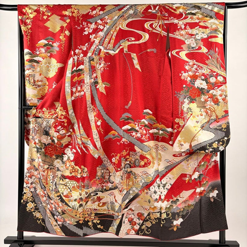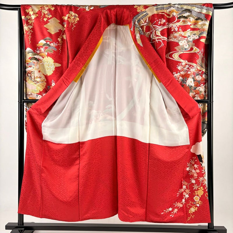 【振袖】 赤系 赤 名品 B 約150cm~約159cm 裄丈65cm (M)size 袖丈91cm以上 9990-29990 二万以下
