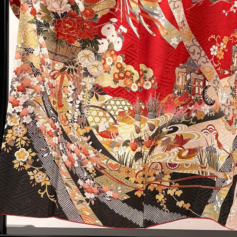 【着物ランク】名品 【素材】正絹 【身丈】約154cm 【裄丈】約65.5cm 【袖丈】約96.5cm 【袖幅】約34.5cm 【前幅】約28cm 【後幅】約30cm 【サイズ】M 【着物仕立て】袷 【着用時期】10~5月 【状態ランク】ランクB 【着物着用シーン】成人式、謝恩会