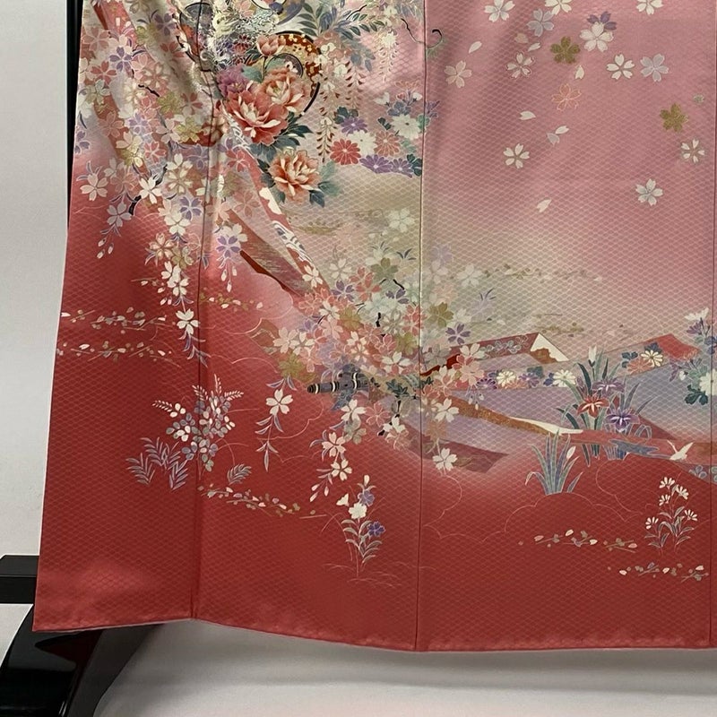 【振袖】 赤系 ピンク 秀品 B 約160cm~約169cm 裄丈65cm (M)size 袖丈91cm以上 7990-9980 二万以下