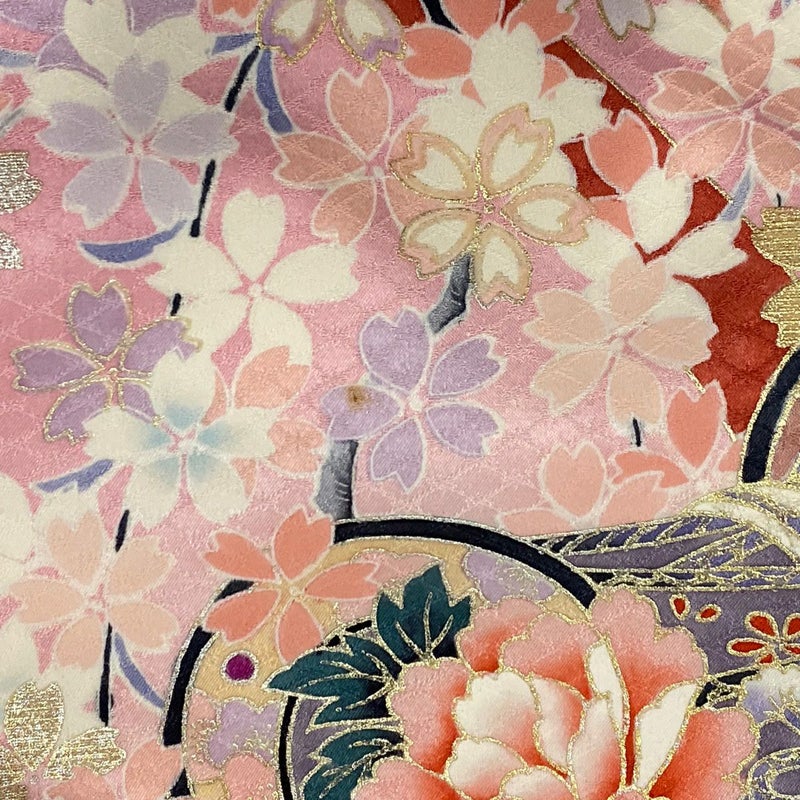 【着物ランク】秀品 【素材】正絹 【身丈】約165cm 【裄丈】約65.5cm 【袖丈】約110cm 【袖幅】約34cm 【前幅】約24cm 【後幅】約30.5cm 【サイズ】M 【着物仕立て】袷 【着用時期】10~5月 【状態ランク】ランクB 【着物着用シーン】成人式、謝恩会