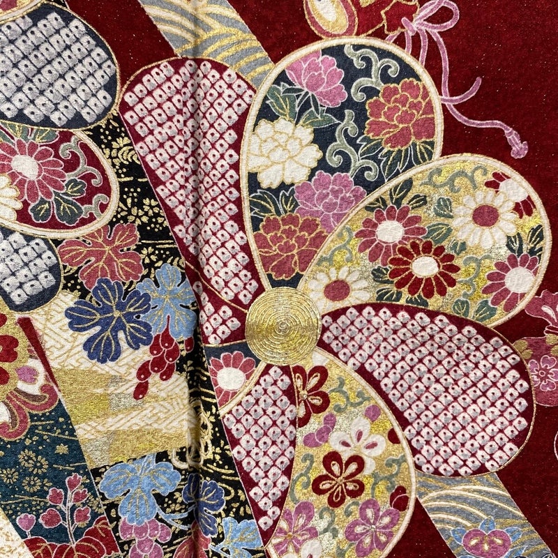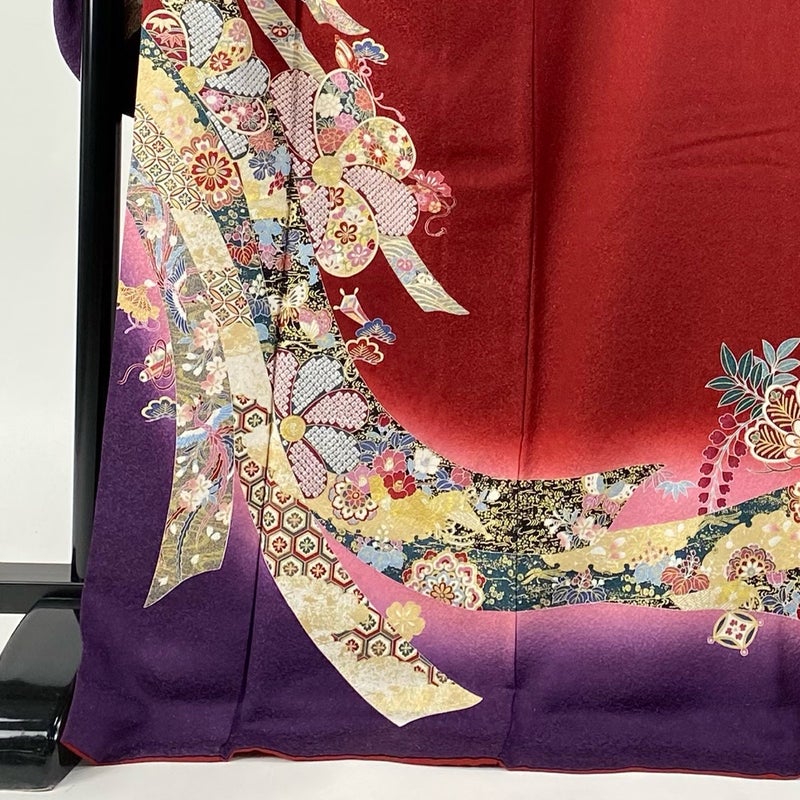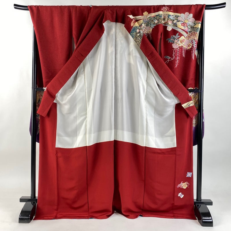 【振袖】 赤系 えんじ色 逸品 A 約170cm~約179cm 裄丈69cm以上 (L)size 袖丈91cm以上 30000- 美品 五万以下