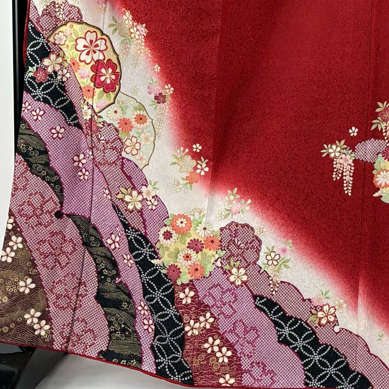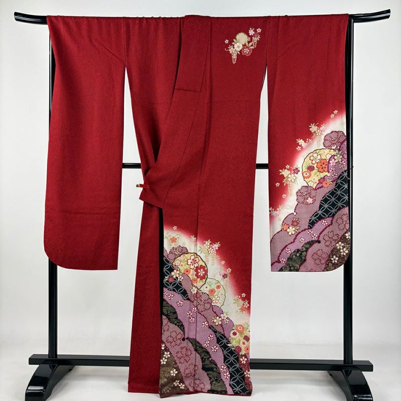 【振袖】 赤系 赤 逸品 A 約160cm~約169cm 裄丈67cm-68cm (L)size 袖丈91cm以上 9990-29990 美品 二万以下