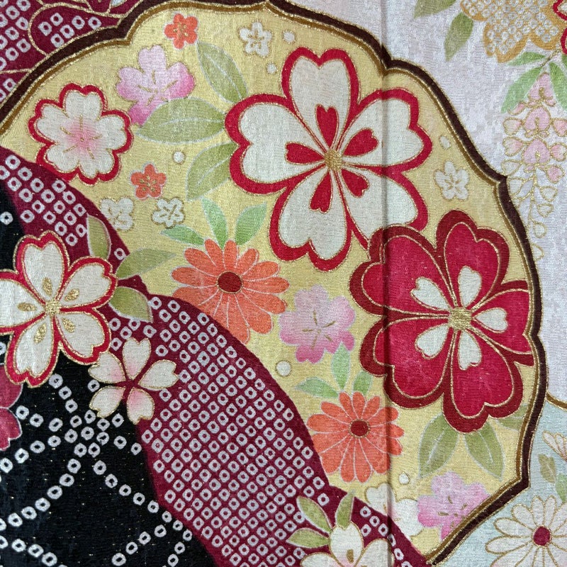 【着物ランク】逸品 【素材】正絹 【身丈】約166cm 【裄丈】約68cm 【袖丈】約113cm 【袖幅】約34cm 【前幅】約25cm 【後幅】約30.5cm 【サイズ】L 【着物仕立て】袷 【着用時期】10~5月 【状態ランク】ランクA 【着物着用シーン】成人式、謝恩会