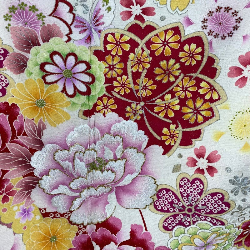 【振袖】 白系 クリーム 逸品 B 約160cm~約169cm 裄丈67cm-68cm (M)size 袖丈91cm以上 9990-29990 二万以下