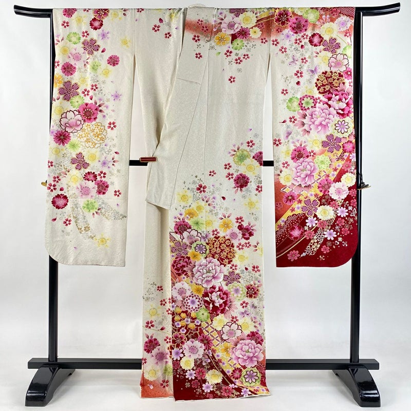 【振袖】 白系 クリーム 逸品 B 約160cm~約169cm 裄丈67cm-68cm (L)size 袖丈91cm以上 9990-29990 二万以下
