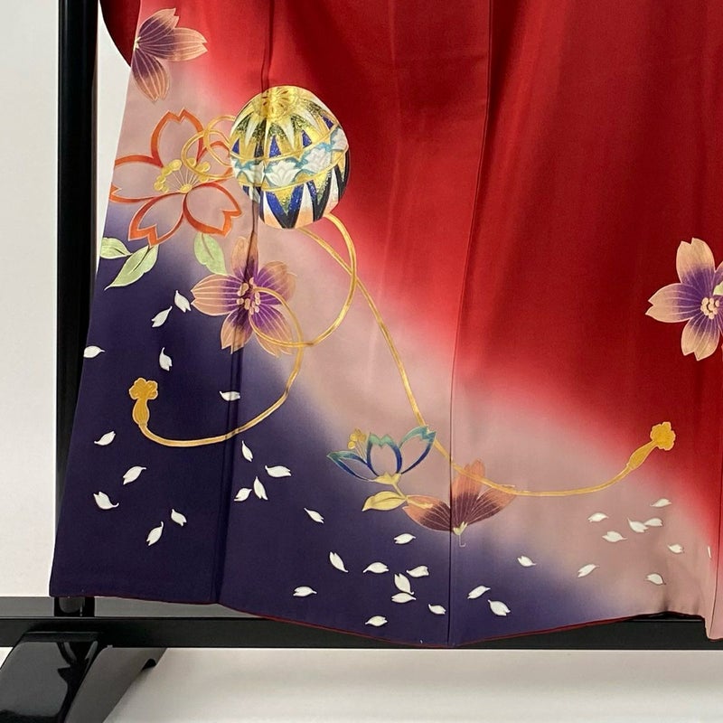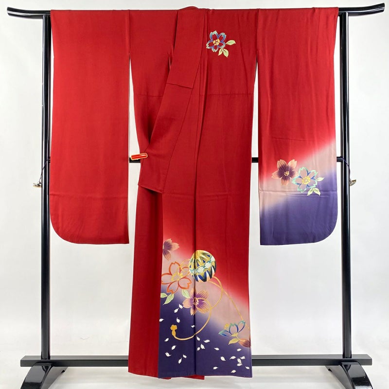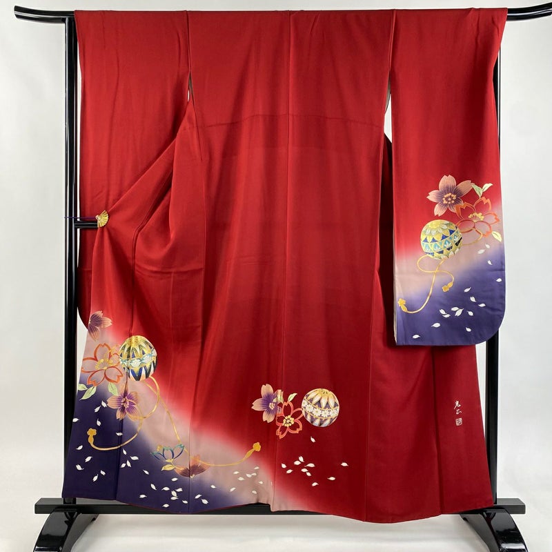 【振袖】 赤系 赤 逸品 C 約150cm~約159cm 裄丈67cm-68cm (M)size 袖丈91cm以上 9990-29990 二万以下