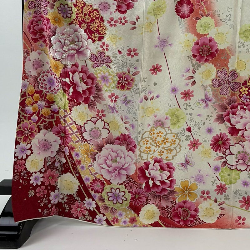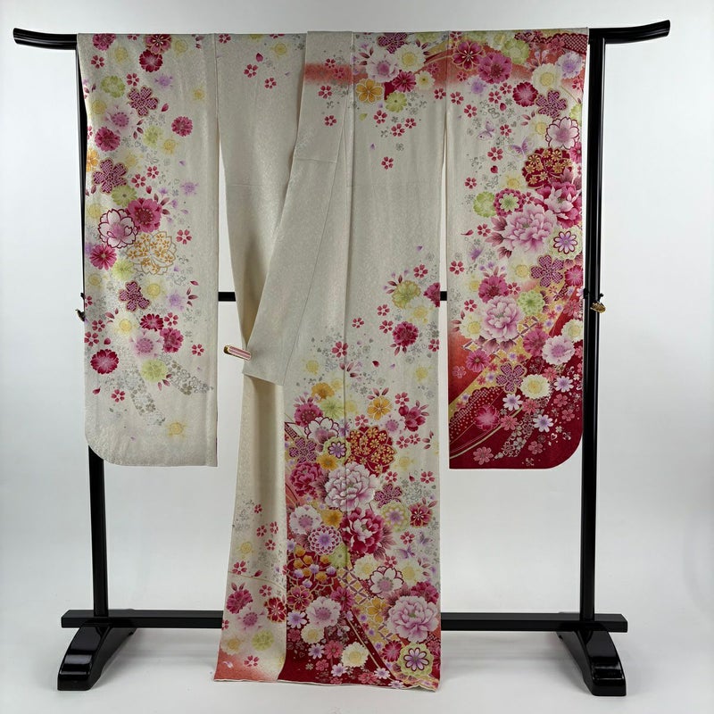 【振袖】 白系 クリーム 逸品 A 約170cm~約179cm 裄丈67cm-68cm (M)size 袖丈91cm以上 30000- 美品 五万以上