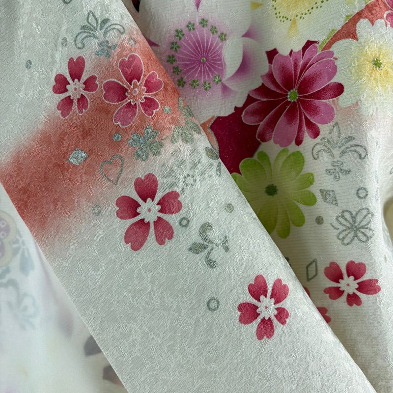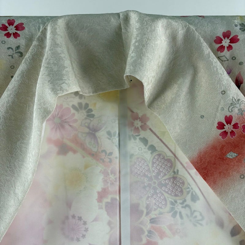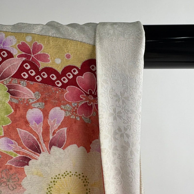 【着物ランク】逸品 【素材】正絹 【身丈】約171cm 【裄丈】約67cm 【袖丈】約114cm 【袖幅】約35cm 【前幅】約25cm 【後幅】約30cm 【サイズ】M 【着物仕立て】袷 【着用時期】10~5月 【状態ランク】ランクA 【着物着用シーン】成人式、謝恩会