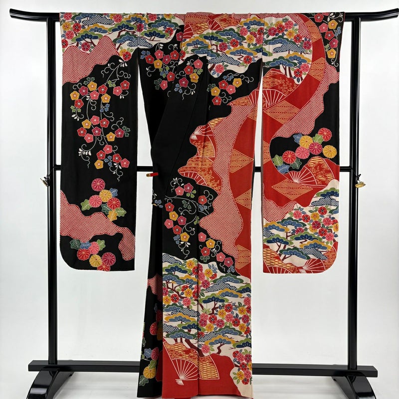 【振袖】 黒系 黒 逸品 C 約160cm~約169cm 裄丈66cm (M)size 袖丈91cm以上 30000- 五万以上