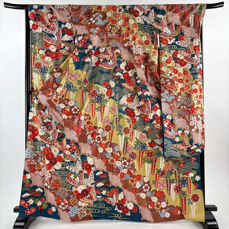 【振袖】 青系 青緑 名品 C 約160cm~約169cm 裄丈67cm-68cm (M)size 袖丈91cm以上 9990-29990 二万以下