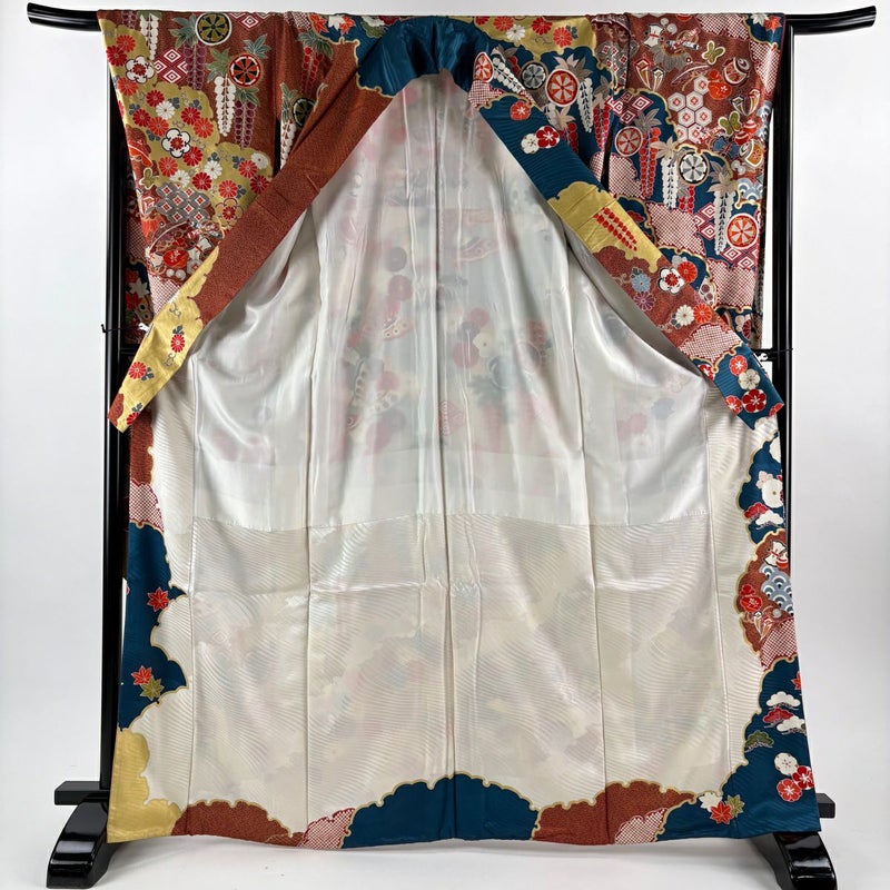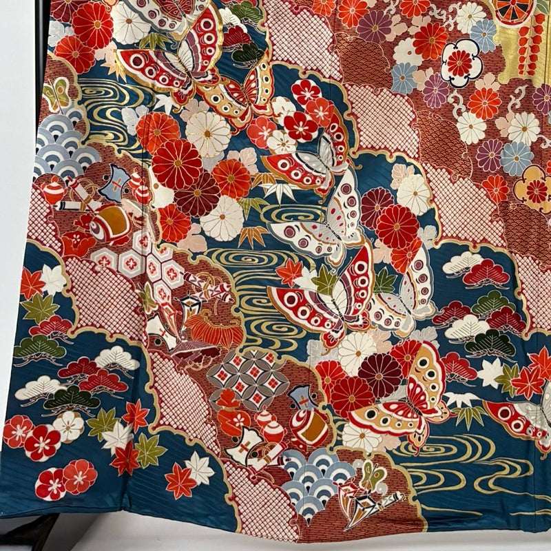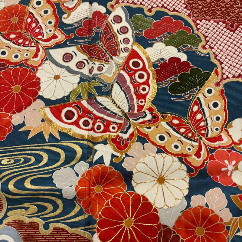 【着物ランク】名品 【素材】正絹 【身丈】約167cm 【裄丈】約67cm 【袖丈】約116cm 【袖幅】約36cm 【前幅】約24.5cm 【後幅】約30.5cm 【サイズ】M 【着物仕立て】袷 【着用時期】10~5月 【状態ランク】ランクC 【着物着用シーン】成人式、謝恩会