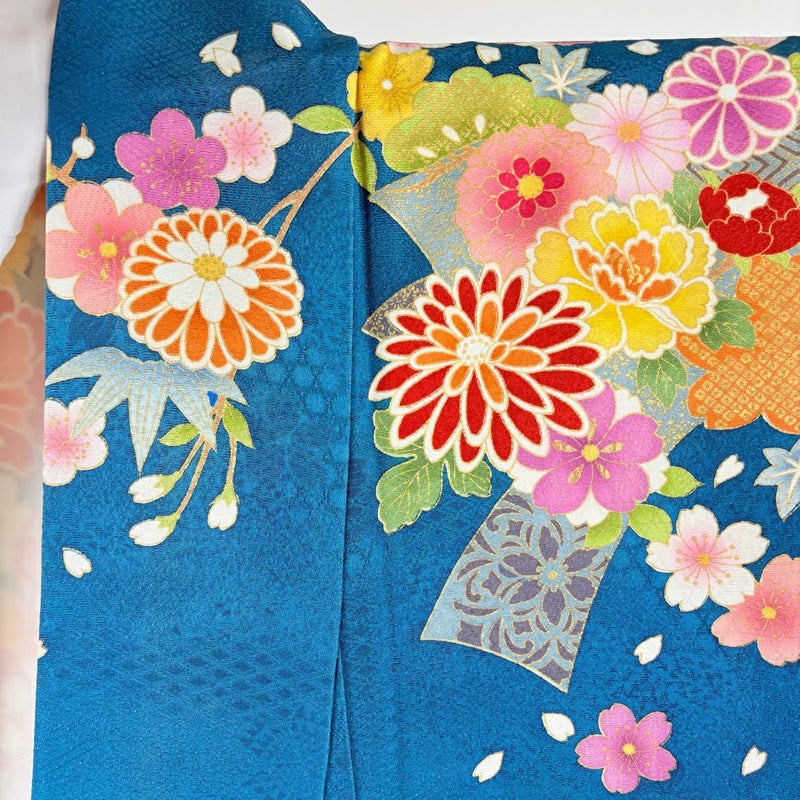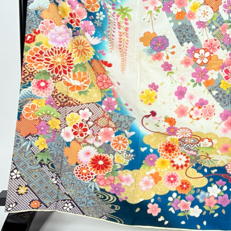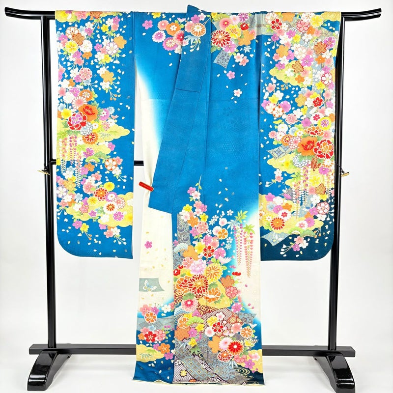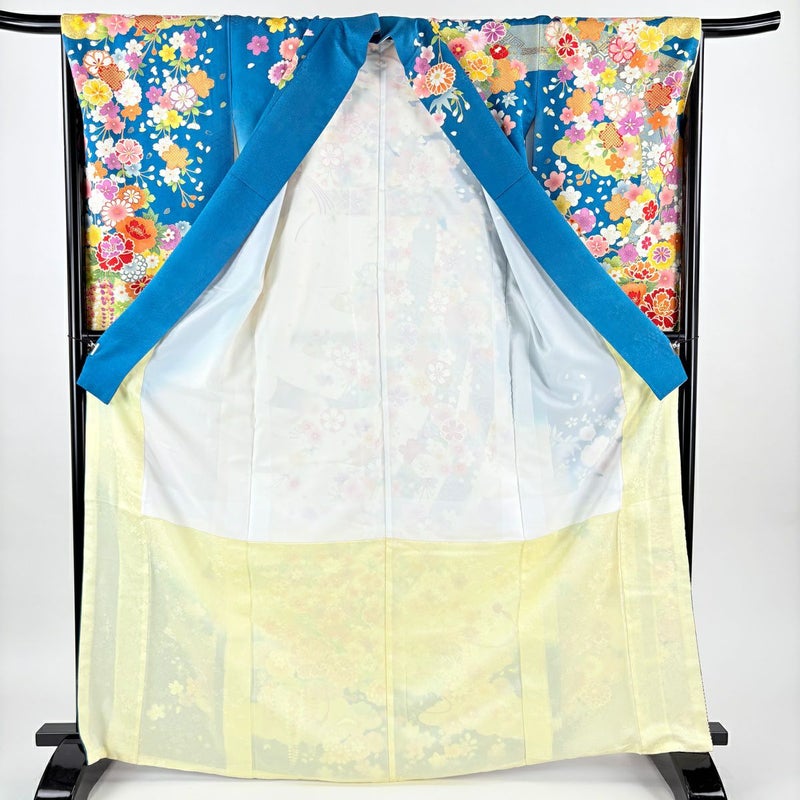 【振袖】 青系 青緑 逸品 A 約160cm~約169cm 裄丈67cm-68cm (L)size 袖丈91cm以上 30000- 美品 五万以下