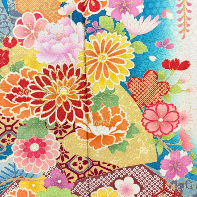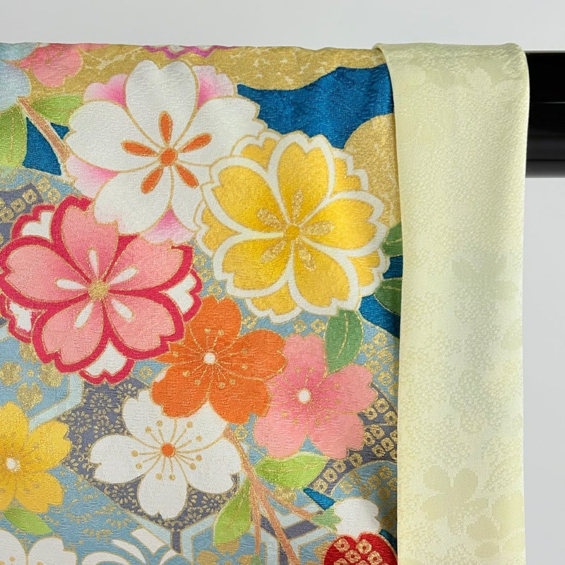 【着物ランク】逸品 【素材】正絹 【身丈】約169.5cm 【裄丈】約68cm 【袖丈】約112cm 【袖幅】約35cm 【前幅】約25.5cm 【後幅】約30.5cm 【サイズ】L 【着物仕立て】袷 【着用時期】10~5月 【状態ランク】ランクA 【着物着用シーン】成人式、謝恩会
