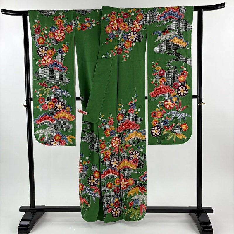 【振袖】 緑系 緑 逸品 B 約150cm~約159cm 裄丈63cm-64cm (M)size 袖丈91cm以上 30000- 五万以上