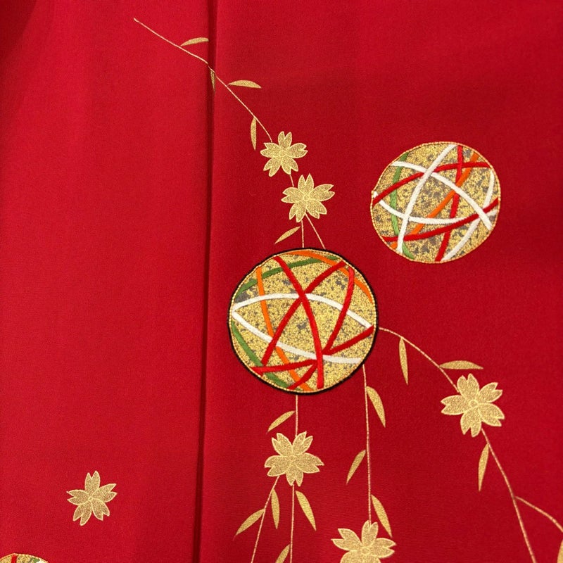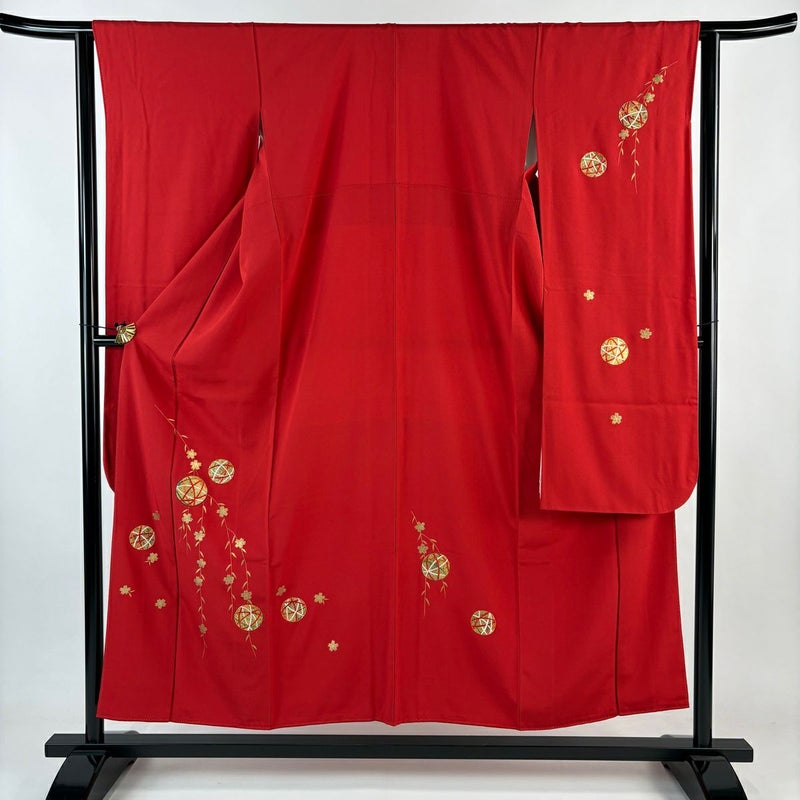 【振袖】 赤系 赤 秀品 B 約150cm~約159cm 裄丈63cm-64cm (S)size 袖丈91cm以上 7990-9980 二万以下