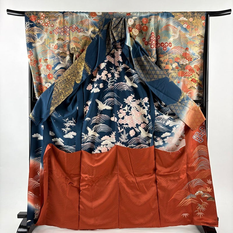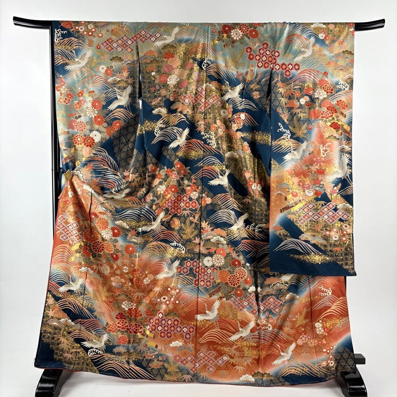 【振袖】 青系 紺色 秀品 B 約160cm~約169cm 裄丈67cm-68cm 袖丈91cm以上 7990-9980 二万以下
