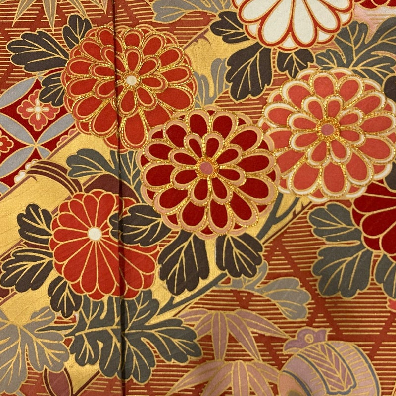 【着物ランク】秀品 【素材】正絹 【身丈】約169.5cm 【裄丈】約68cm 【袖丈】約117cm 【袖幅】約36.5cm 【前幅】約27cm 【後幅】約31cm 【着物仕立て】未仕立て 【状態ランク】ランクB 【着物着用シーン】成人式、謝恩会