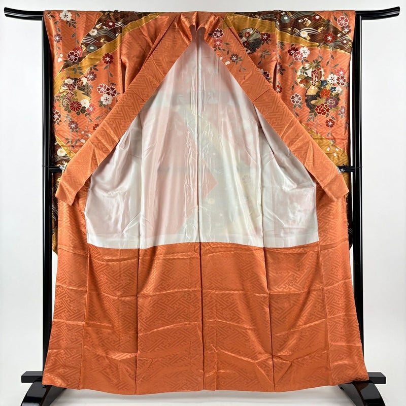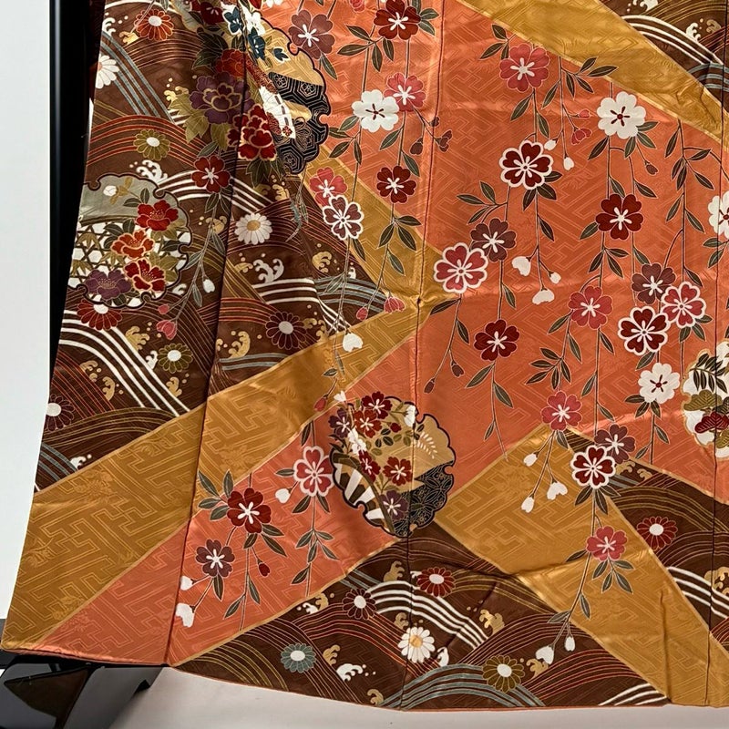 【振袖】 赤系 赤茶 秀品 B 約160cm~約169cm 裄丈63cm-64cm (M)size 袖丈91cm以上 7990-9980 二万以下