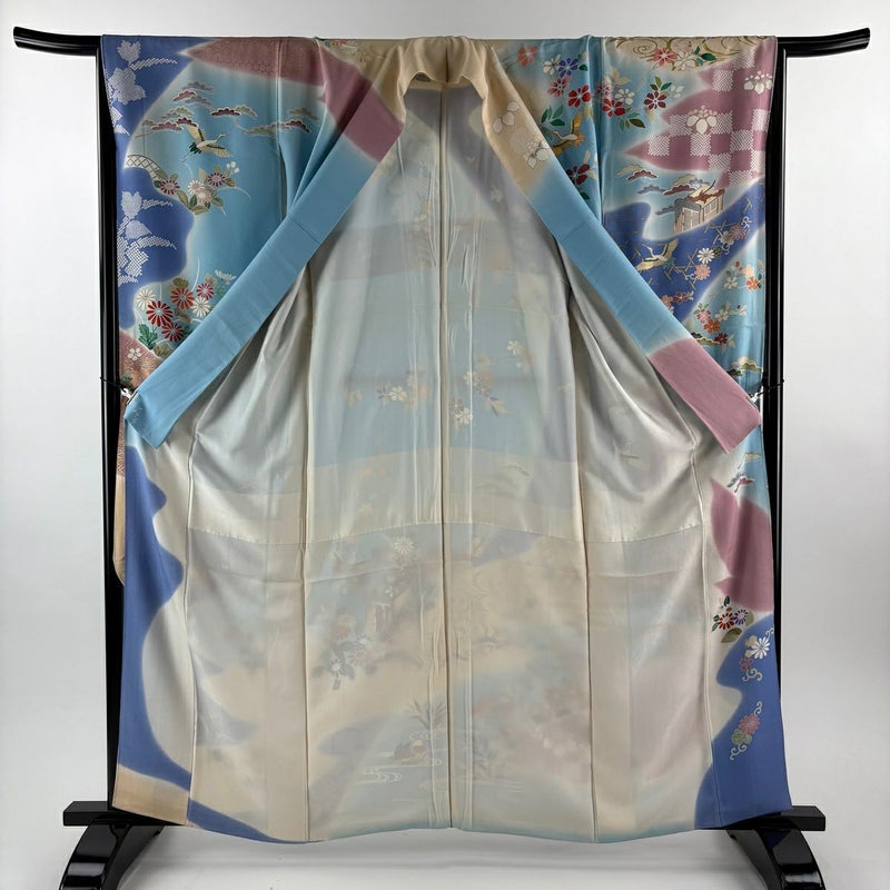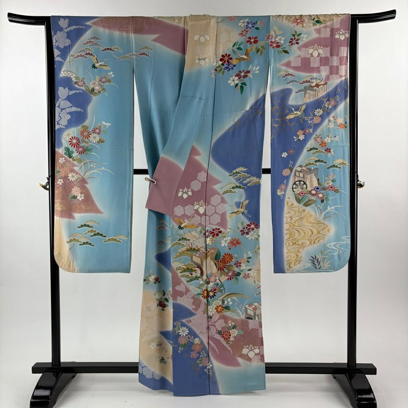 【振袖】 青系 水色 逸品 C 約160cm~約169cm 裄丈65cm (M)size 袖丈91cm以上 30000- 五万以上