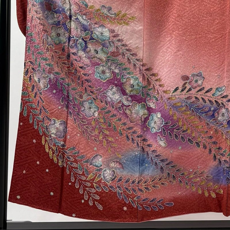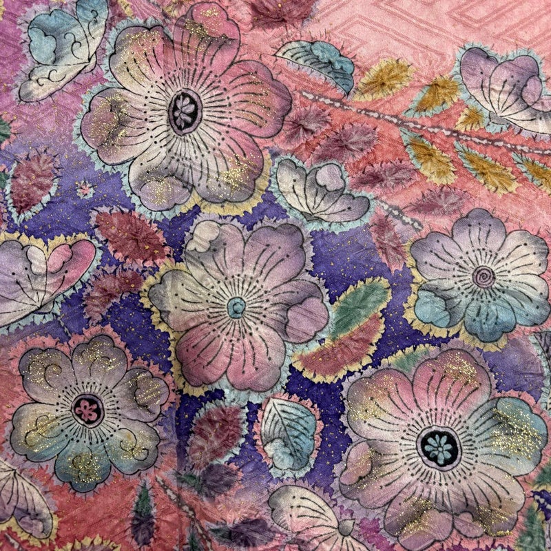 【着物ランク】名品 【素材】正絹 【身丈】約154.5cm 【裄丈】約62cm 【袖丈】約102cm 【袖幅】約32cm 【前幅】約23.5cm 【後幅】約28.5cm 【サイズ】S 【着物仕立て】袷 【着用時期】10~5月 【状態ランク】ランクC 【着物着用シーン】成人式、謝恩会