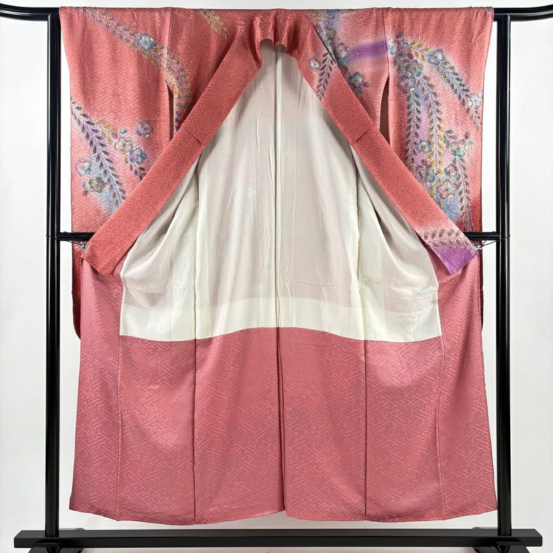 【振袖】 赤系 ピンク 名品 C 約150cm~約159cm 裄丈62cm以下 (S)size 袖丈91cm以上 9990-29990 二万以下