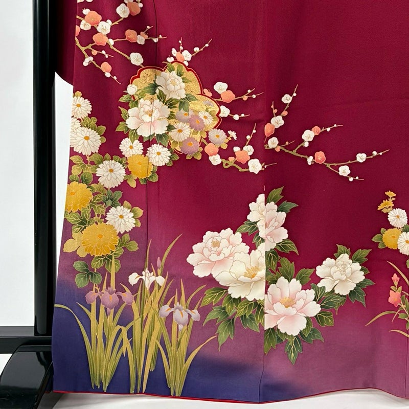 【振袖】 紫系 赤紫 秀品 C 約160cm~約169cm 裄丈67cm-68cm (M)size 袖丈91cm以上 7990-9980 二万以下