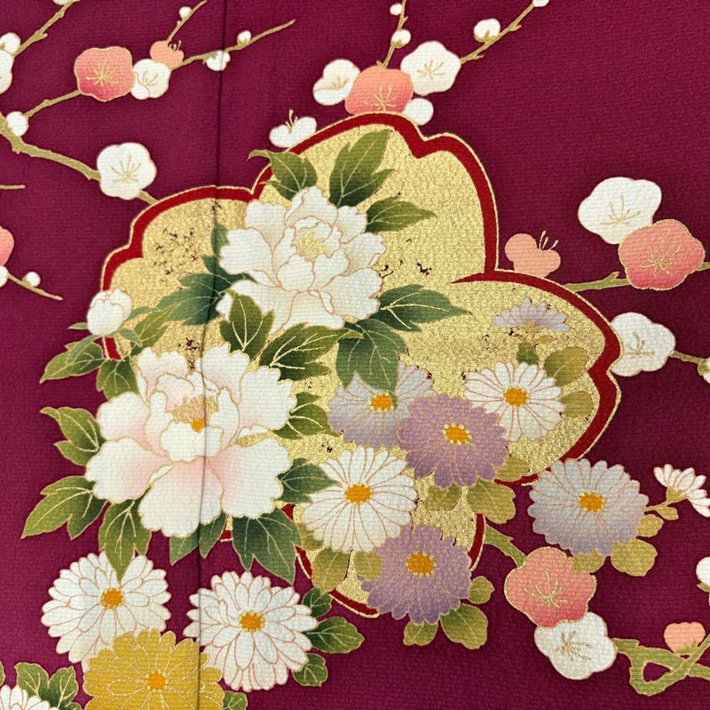 【着物ランク】秀品 【素材】正絹 【身丈】約166cm 【裄丈】約67cm 【袖丈】約111cm 【袖幅】約34cm 【前幅】約22cm 【後幅】約28cm 【サイズ】M 【着物仕立て】袷 【着用時期】10~5月 【状態ランク】ランクC 【着物着用シーン】成人式、謝恩会
