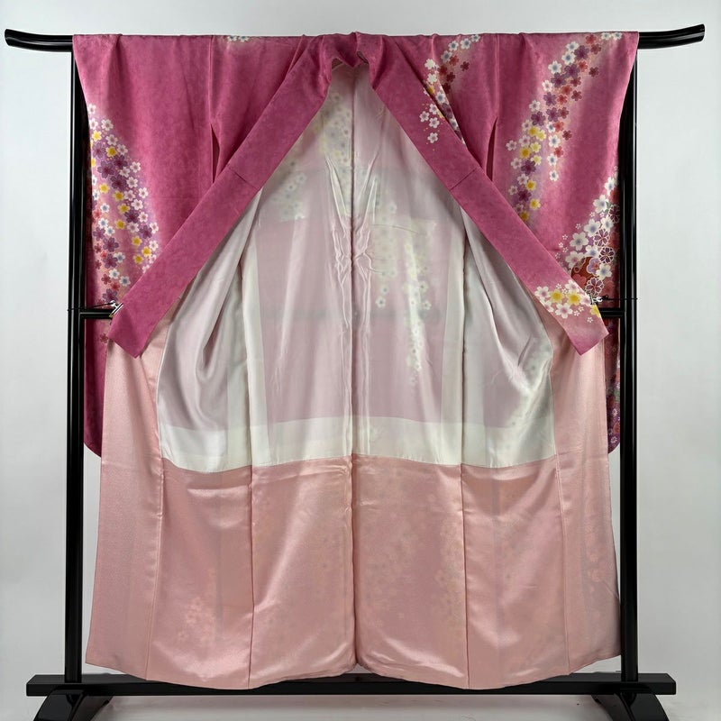 【振袖】 赤系 ピンク 名品 A 約150cm~約159cm 裄丈67cm-68cm (L)size 袖丈91cm以上 9990-29990 美品 二万以下