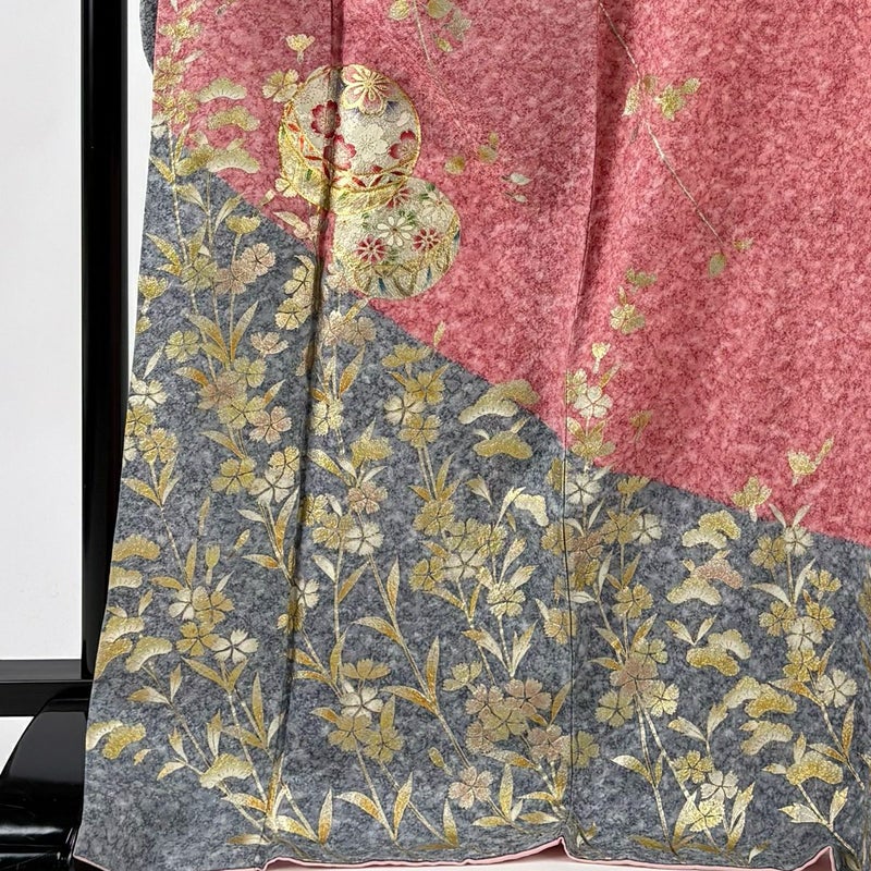 【振袖】 赤系 ピンク 名品 B 約170cm~約179cm 裄丈69cm以上 (L)size 袖丈91cm以上 9990-29990 二万以下