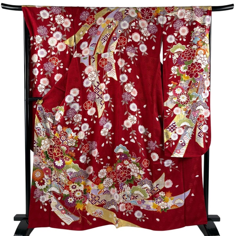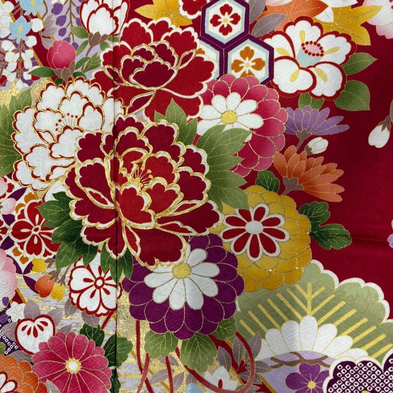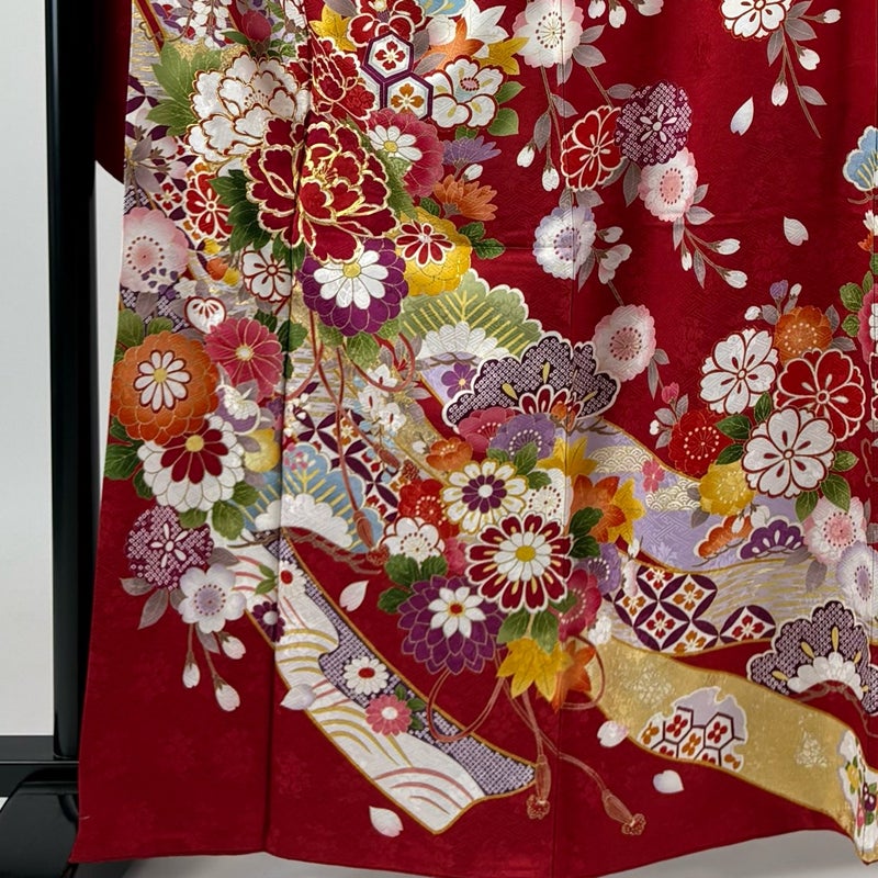 【振袖】 赤系 赤 名品 B 約160cm~約169cm 裄丈69cm以上 (L)size 袖丈91cm以上 9990-29990 二万以下